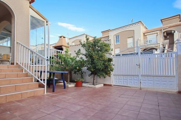 Es un adosado de dos plantas. En la planta baja se encuentra un jardín con el parking para un coche, trastero y barbacoa, terraza acristalada, salón-comedor con la cocina americana y patio, un dormitorio, un baño.